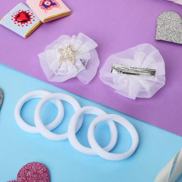 Этот нежный набор аксессуаров для волос станет любимым помощником мамы и маленькой принцессы. Он превращает утренние причёсывания в весёлую игру, а образ — в аккуратный и законченный. Белоснежный комплект дополнит как повседневный, так и праздничный наряд.