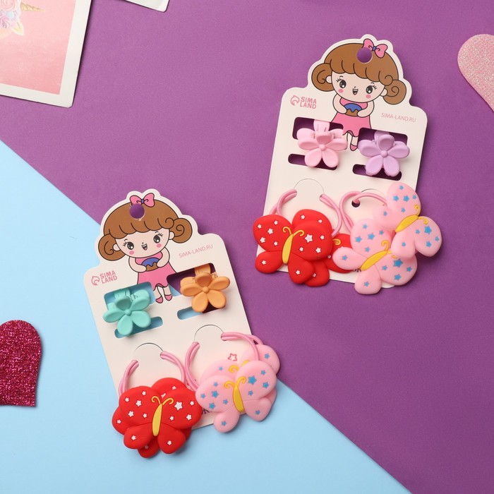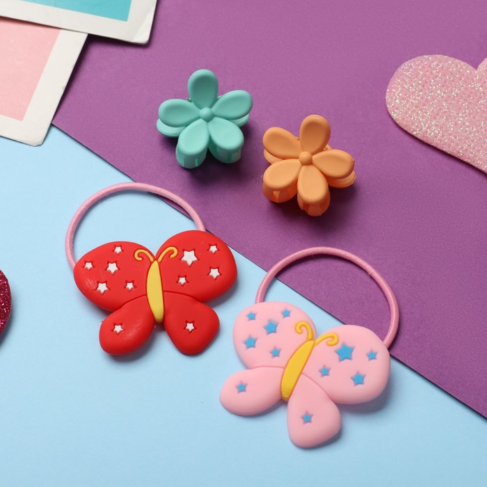 Набор для волос «Малышка», 4 резинки, 2 крабика, бабочки