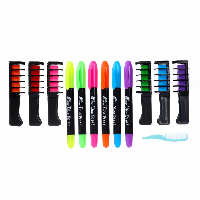Набор для творчества и экспериментов с волосами – это отличный способ проявить свою индивидуальность и создать уникальный образ. В набор входят мелки и фломастеры для окрашивания волос, которые позволяют экспериментировать с цветом и стилем. С их помощью можно создавать яркие и неповторимые образы, подчеркивая свою индивидуальность.