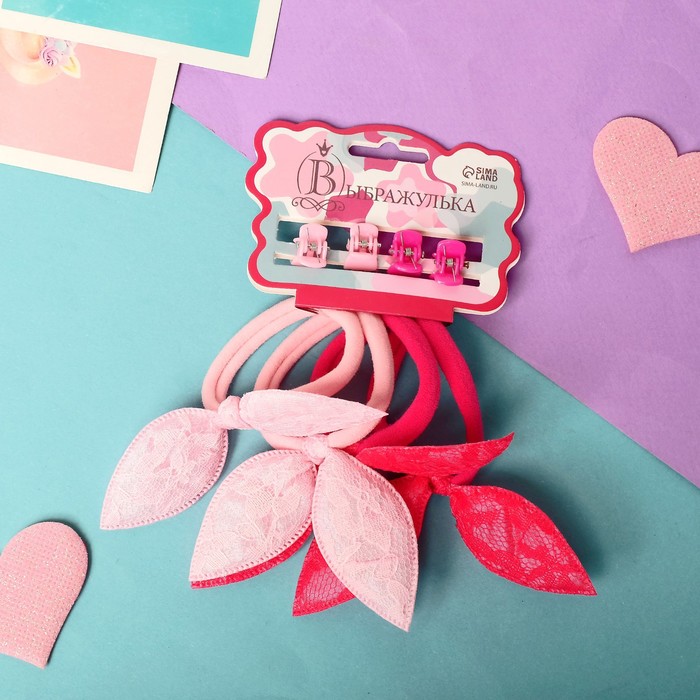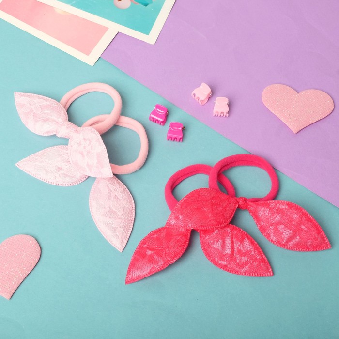 Набор для волос "Милена" (4 краба, 4 резинки) кружевные ушки, розовый