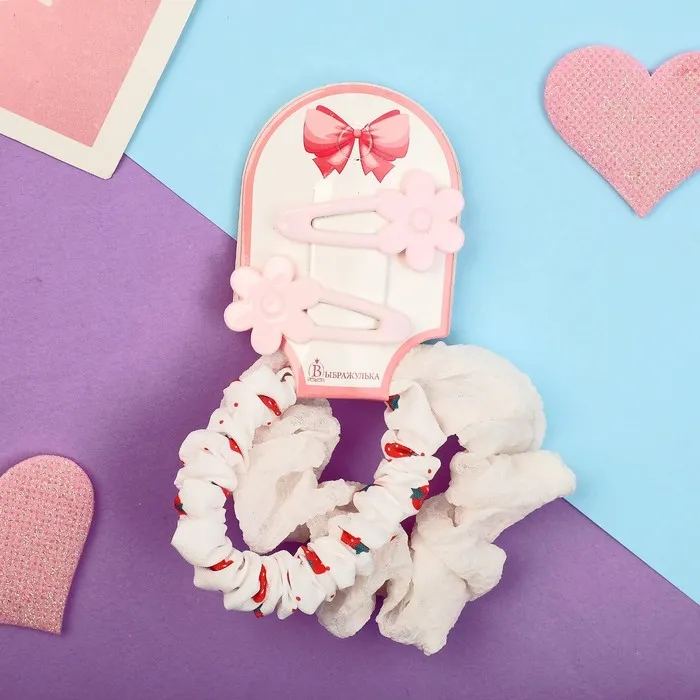 Набор для волос "Милица" 4 шт (невидимка 2 шт - 4 см, резинка 2 шт) клубнички, бело-розовый 929896 — Характеристики