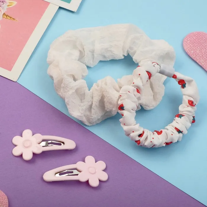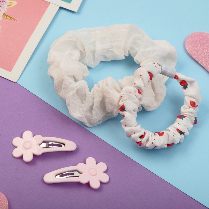 Набор для волос "Милица" 4 шт (невидимка 2 шт - 4 см, резинка 2 шт) клубнички, бело-розовый 929896