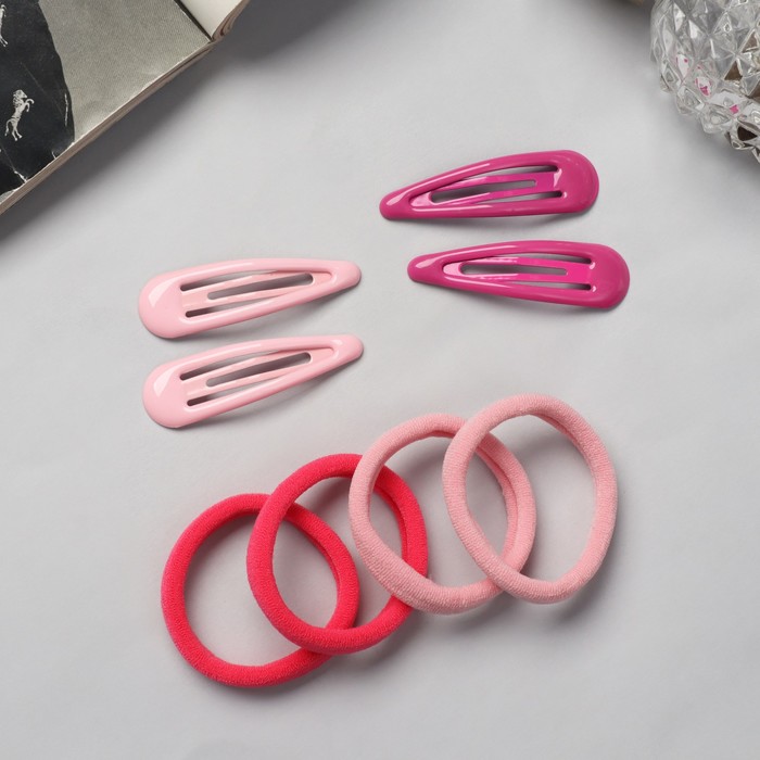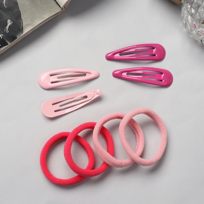 Набор для волос «Мира», 12 шт.: 4 невидимки 5 см, 8 резинок 3.5 см, розовый