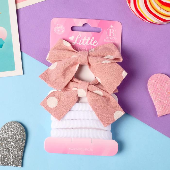 Набор для волос «Аделин», 4 резинки, 2 зажима) белый горох, 6.5×4.5 см, розовый