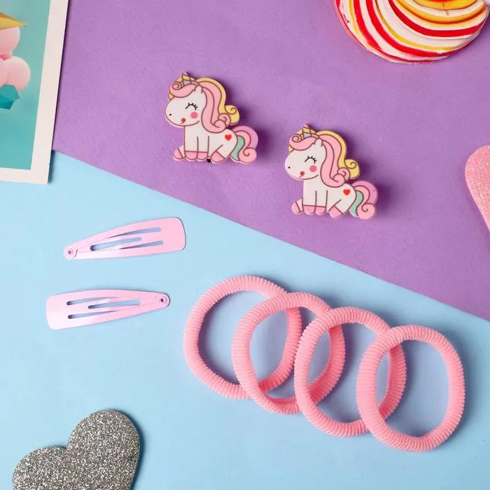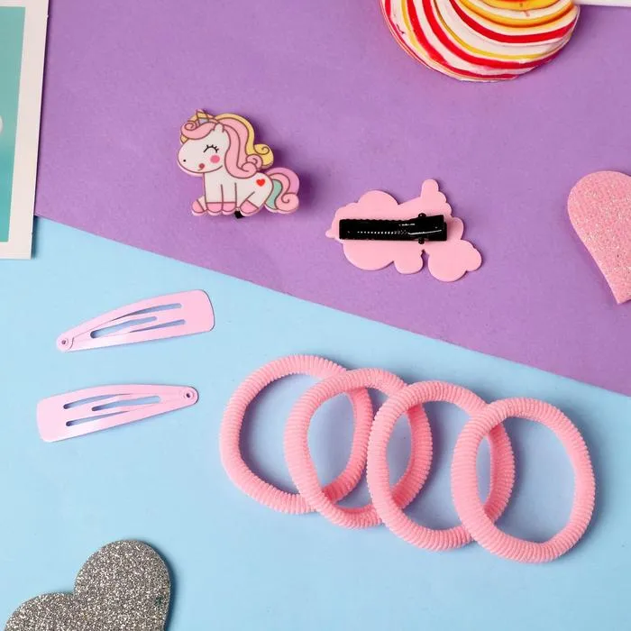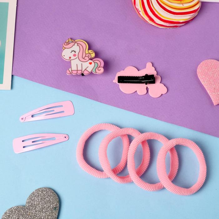 Набор для волос "Нежность" (4 резинки, 2 зажима, 2 невидимки) милашки, 4 и 4,5 см, розовый