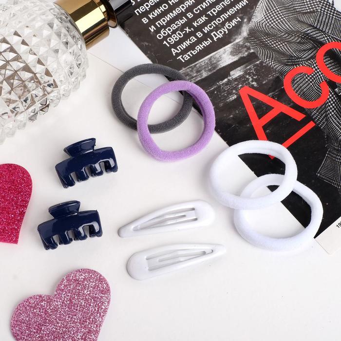 Набор для волос "Новия" (2 невидимки 5 см, 4 резинки, 2 краба 3 см) бело-серый