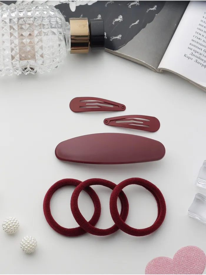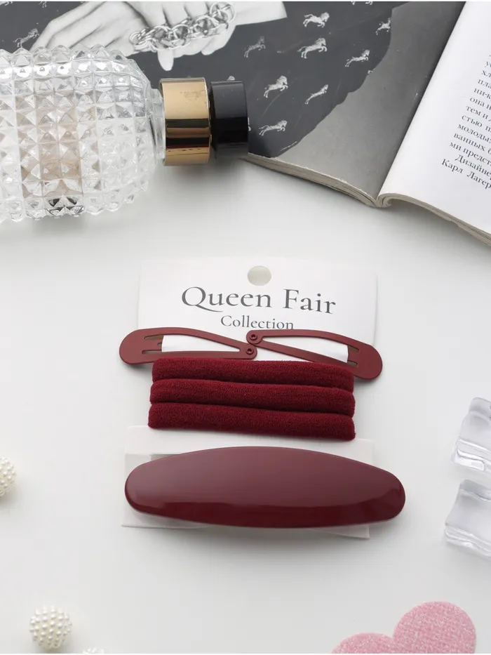 Набор для волос QF «Авиталь», 3 резинки 6 см, заколка-автомат 9 см, 2 невидимки 4.5 см, бордовый