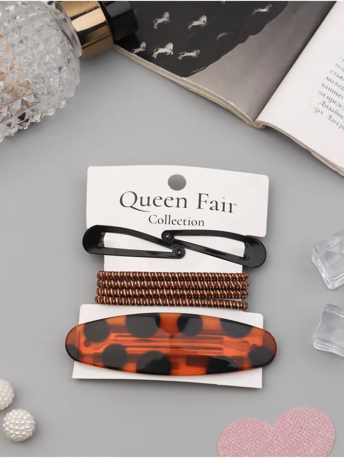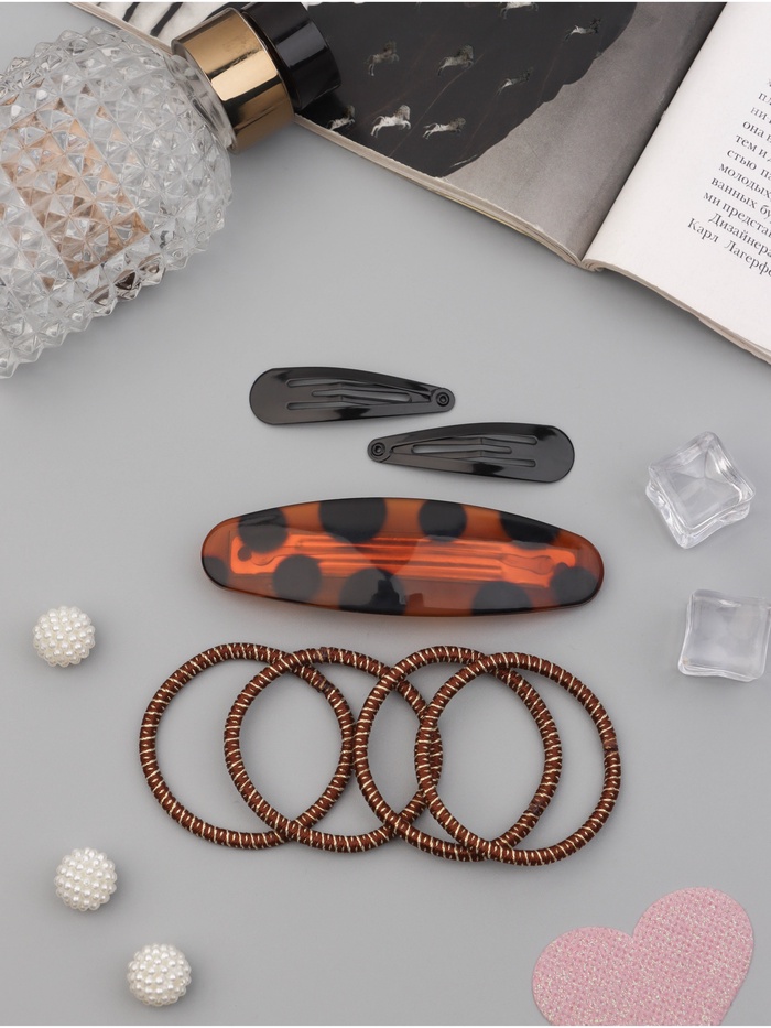 Набор для волос QF «Авиталь», 4 резинки 6.5 см, автомат 8 см, 2 невидимки 4.5 см, чёрный, коричневый — Характеристики