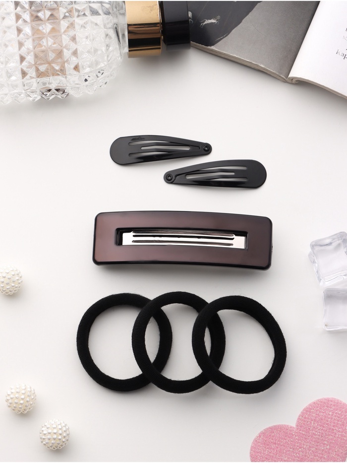 Набор для волос QF «Элери», 3 резинки 6 см, автомат 8 см, 2 невидимки 4.5 см, чёрный — Характеристики