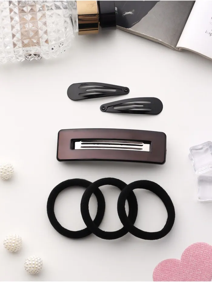 Набор для волос QF «Элери», 3 резинки 6 см, автомат 8 см, 2 невидимки 4.5 см, чёрный