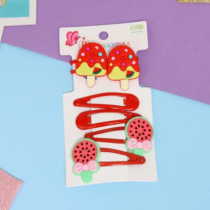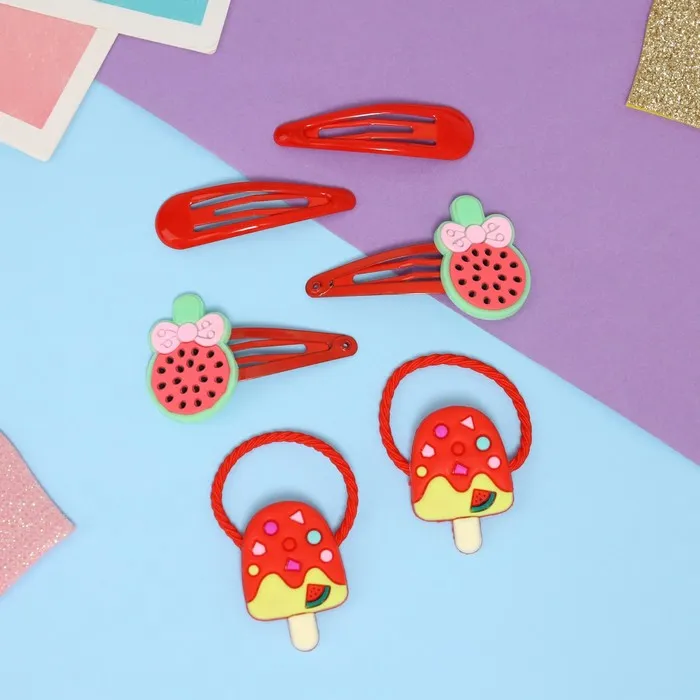 Набор для волос «Ширли», 2 резинки 5 см, 4 невидимки 5.5 см, мороженое, красный