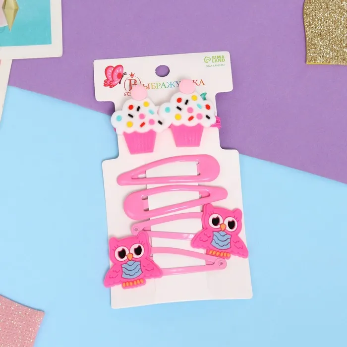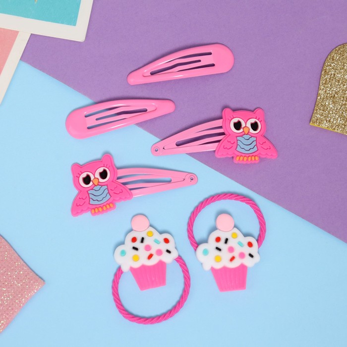 Набор для волос «Ширли», 2 резинки 5 см, 4 невидимки 5.5 см, пирожное, розовый — Характеристики
