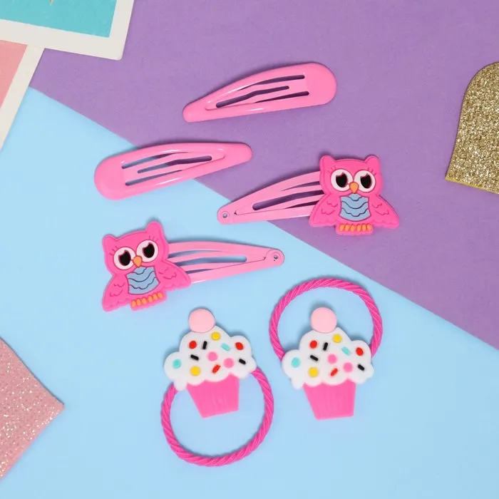Набор для волос «Ширли», 2 резинки 5 см, 4 невидимки 5.5 см, пирожное, розовый