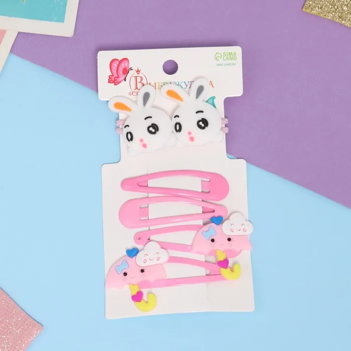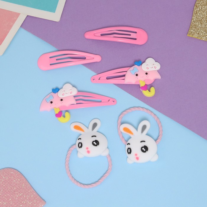 Набор для волос «Ширли», 2 резинки 5 см, 4 невидимки 5.5 см, зайка, розовый — Характеристики