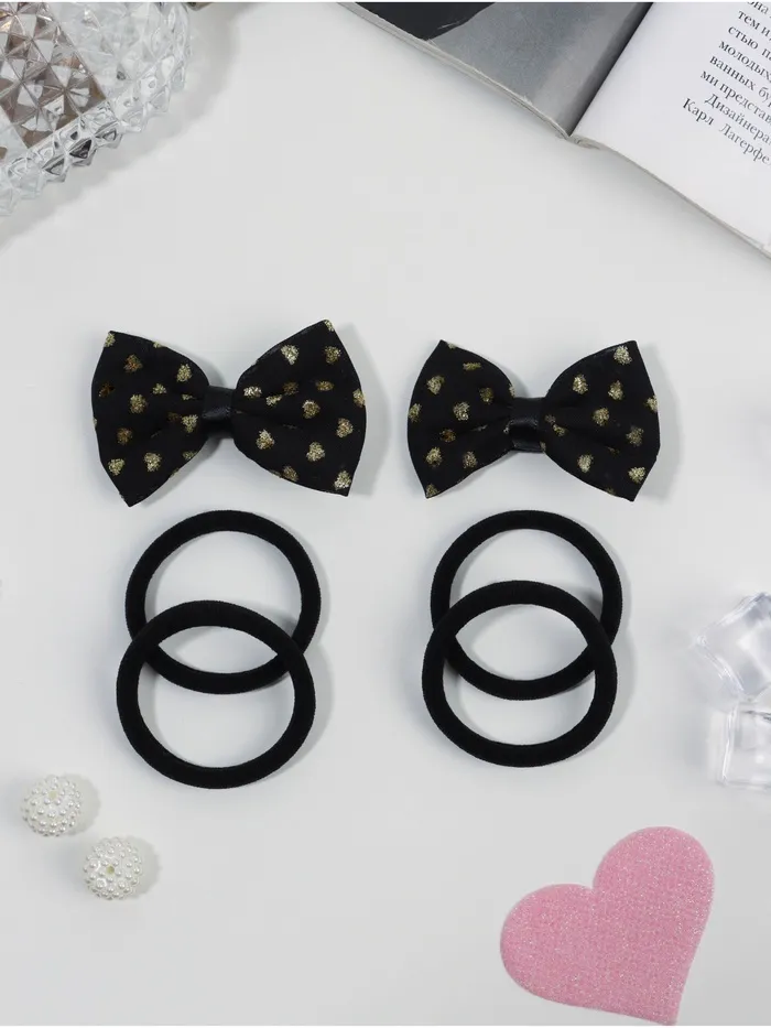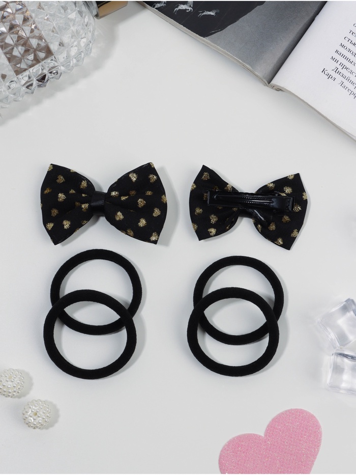 Набор для волос «Классика», 2 зажима, 4 резинки, бантик горох, чёрный