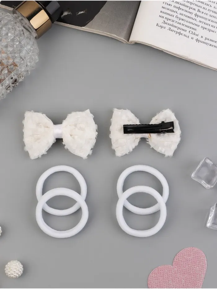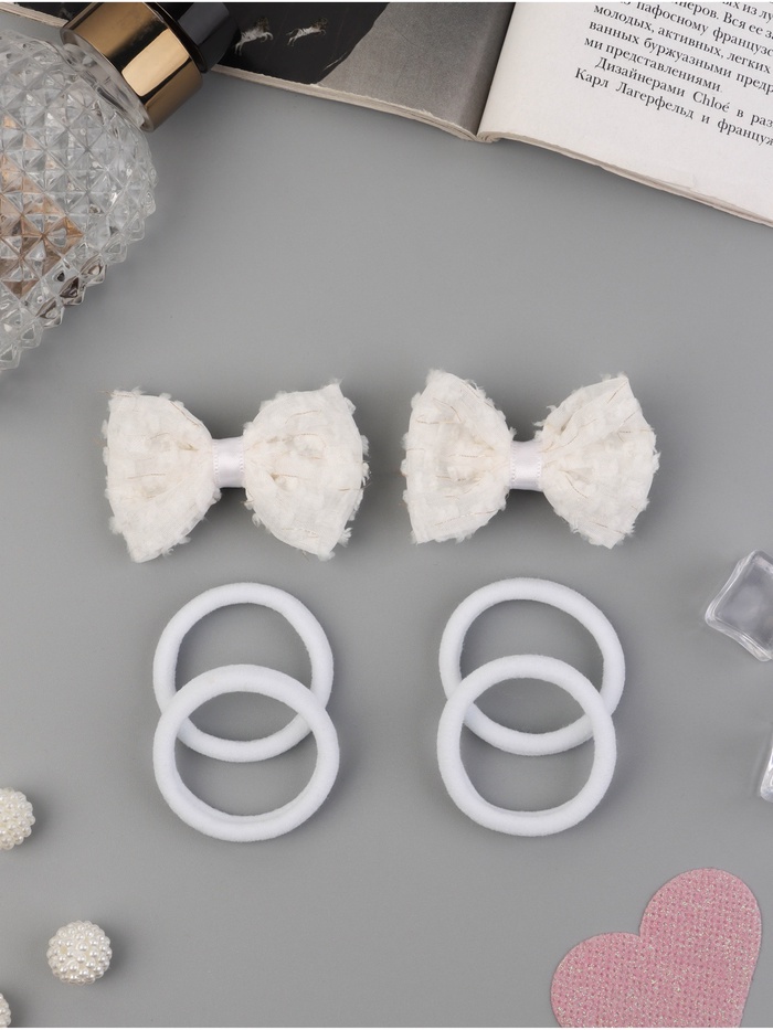 Набор для волос «Школьница галант», 4 резинки 3.5 см, 2 зажима 5.5 см, облачко, белый — Характеристики