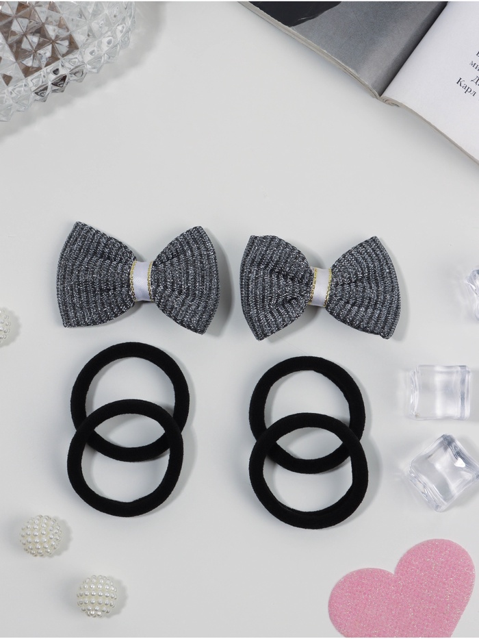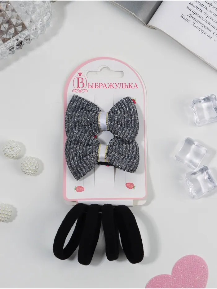 Набор для волос «Школьница галант», 4 резинки 3.5 см, 2 зажима 5.5 см, сияние, чёрный — Характеристики
