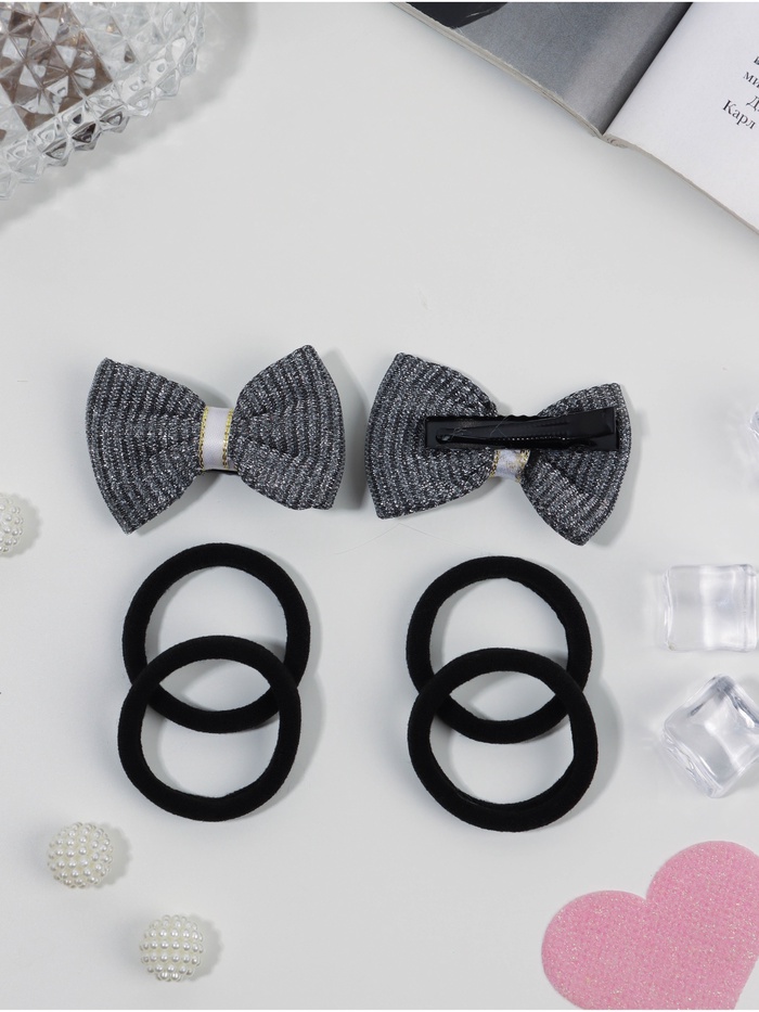 Набор для волос «Классика», 2 зажима, 4 резинки, бантик горох, чёрный