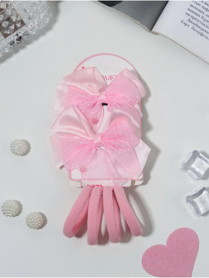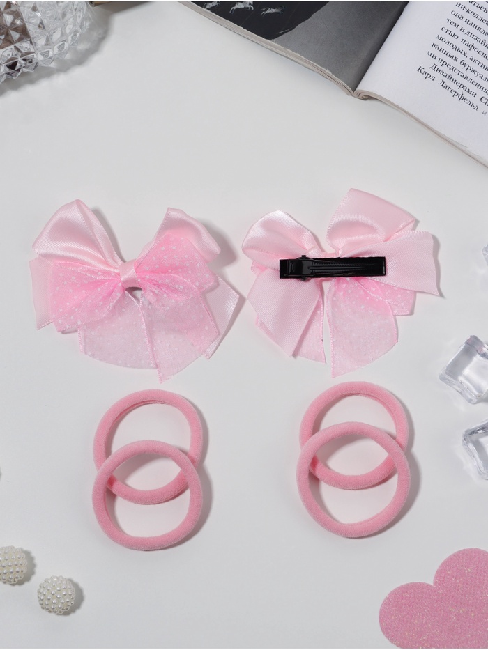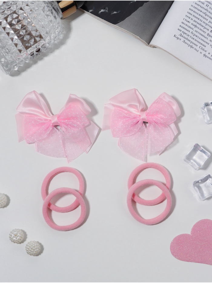 Набор для волос «Школьница галант», 4 резинки 3.5 см, 2 зажима 6 см, крапинка, розовый — Характеристики