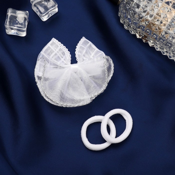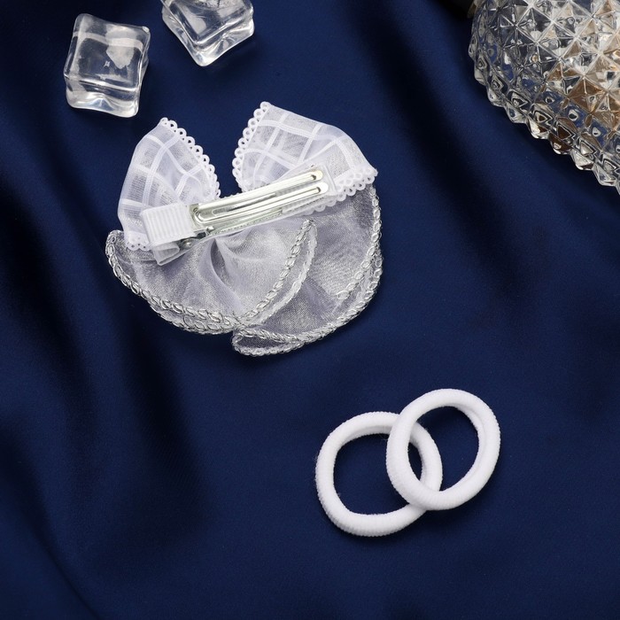 Добавьте стиль и элегантность к школьному образу! Комплект аксессуаров для волос с белыми бантами – это идеальное дополнение для маленьких модниц. Набор включает в себя заколку и две резинки, которые помогут создать аккуратные и красивые прически.