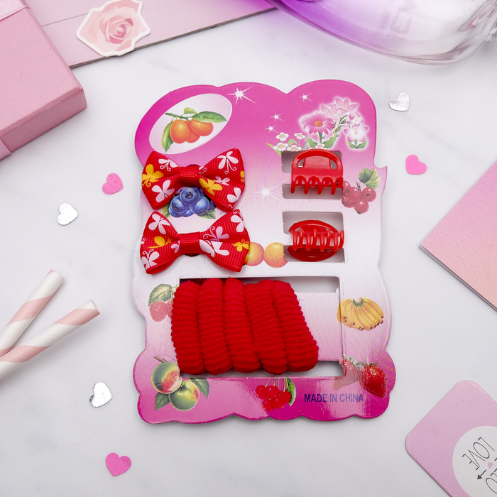 Набор для волос «Софи», 7 резинок, 2 краба, с бабочками, красный
