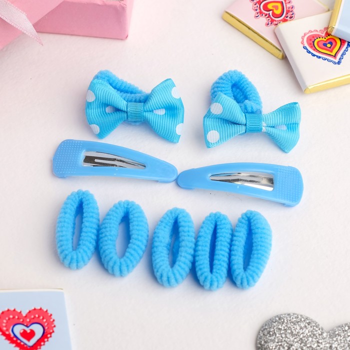 Создай стильные образы с аксессуарами для волос! Набор «Софи» (9 предметов, голубой) — это комплект резинок, заколок и бантиков в горошек для повседневных и праздничных причесок. Яркие аксессуары подчеркнут индивидуальность и добавят игривости образу.