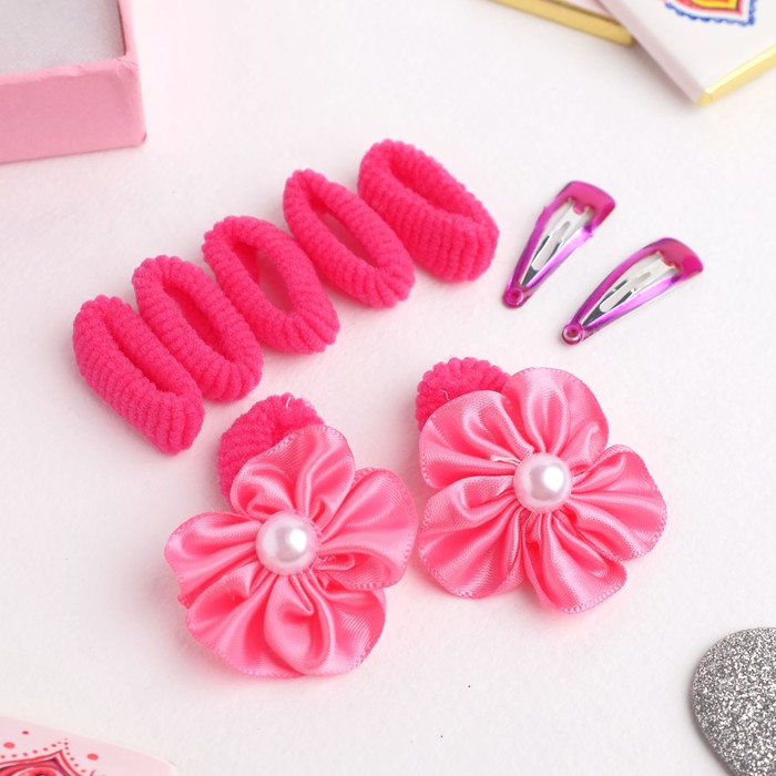 Набор для волос "Софи" (7 резинок, 2 невидимки) цветы с бусиной, розовый