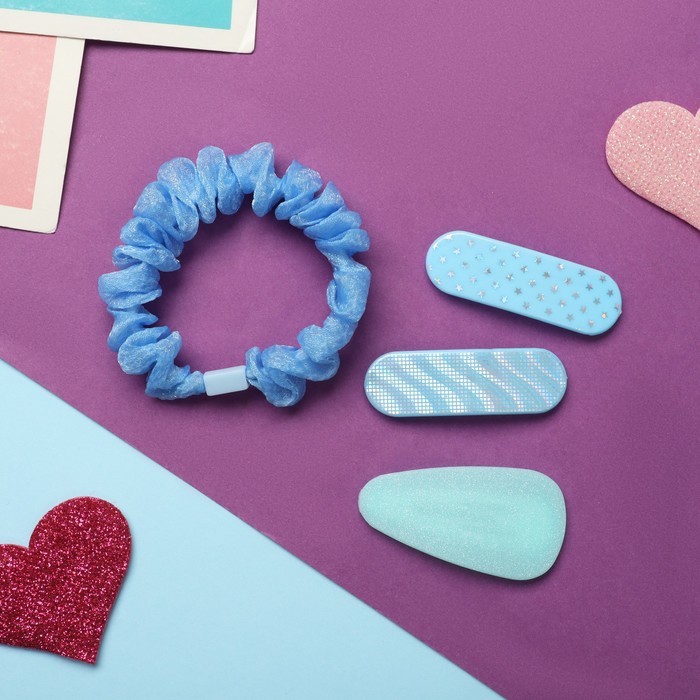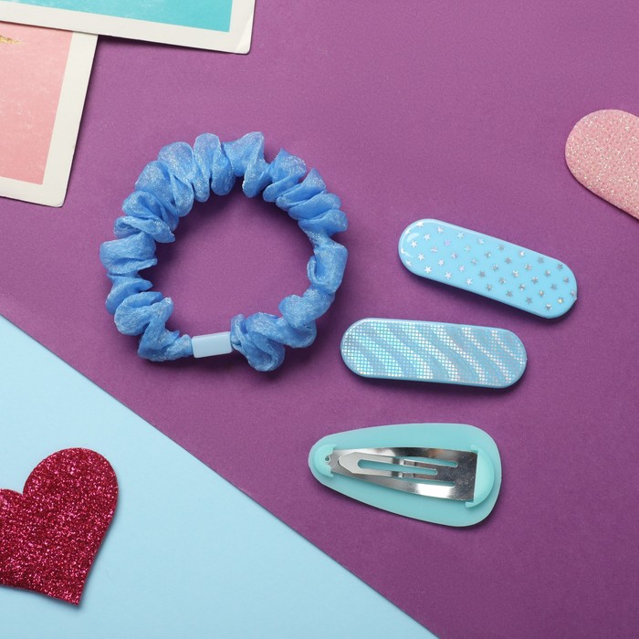 Набор для волос «Толиман», 4 шт.: 1 резинка 6 см, 3 невидимки 5 см, голубой