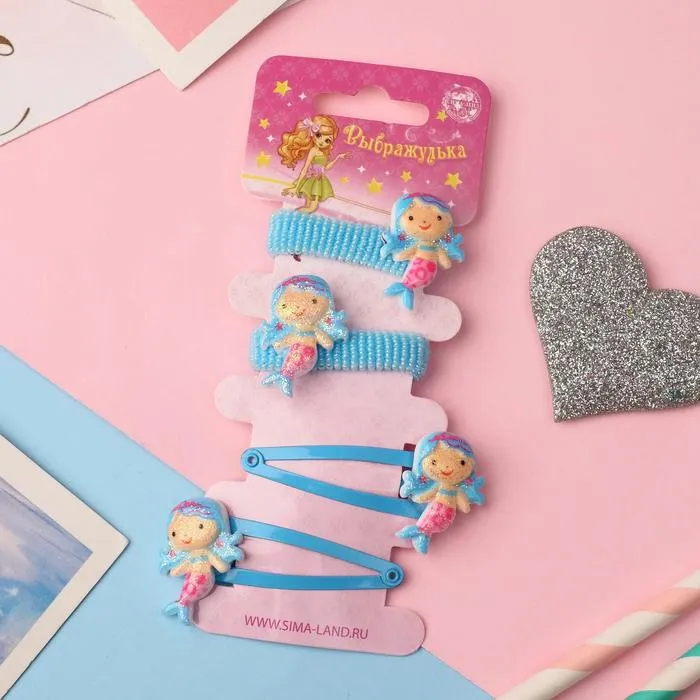Набор для волос "Веселый глянец" (2 резинки, 2 невидимки) русалки, голубой