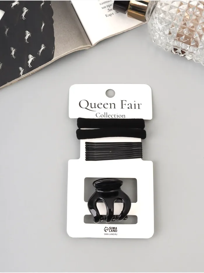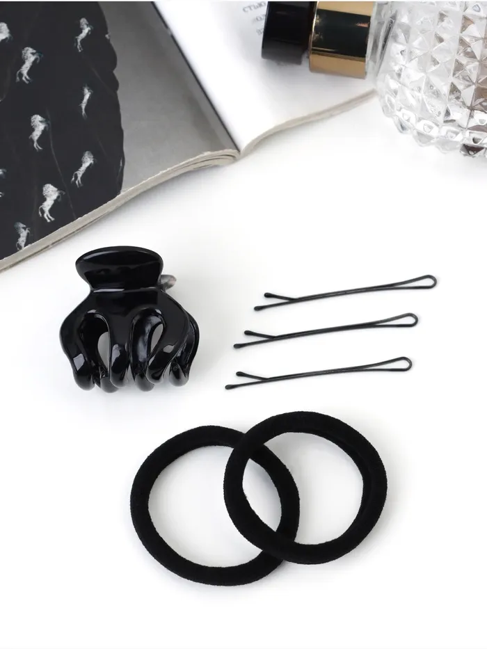 Набор для волос «Вивьен», 2 резинки 5.5 см, 8 невидимок 5.5 см, краб 3 см, зубья, чёрный