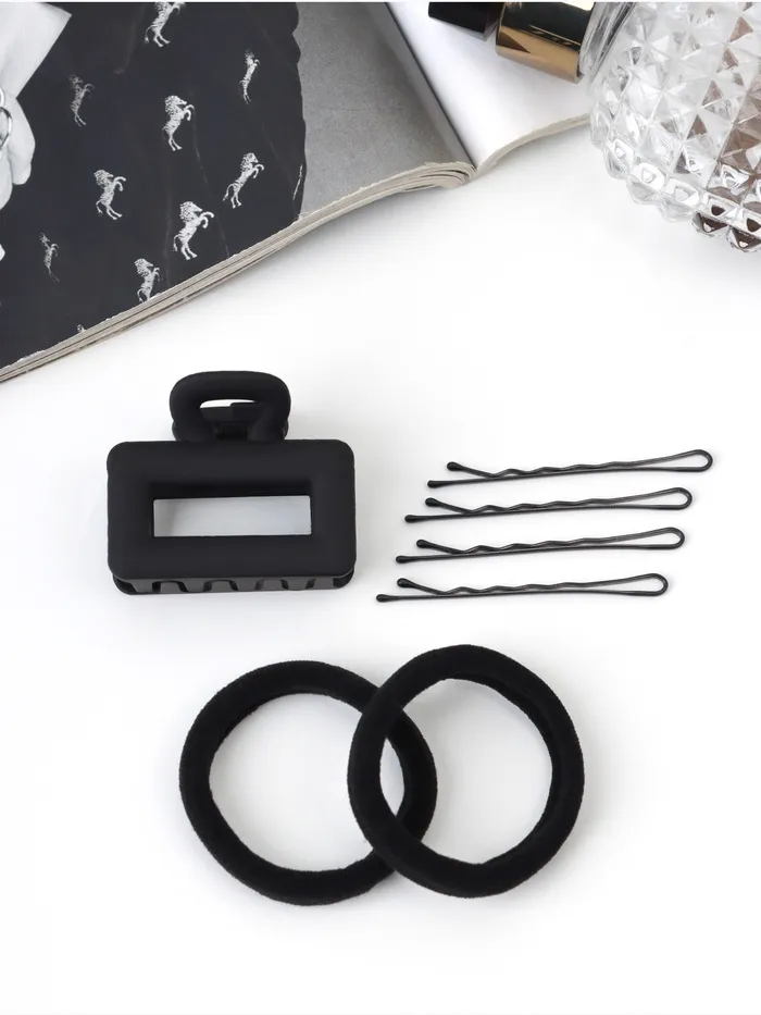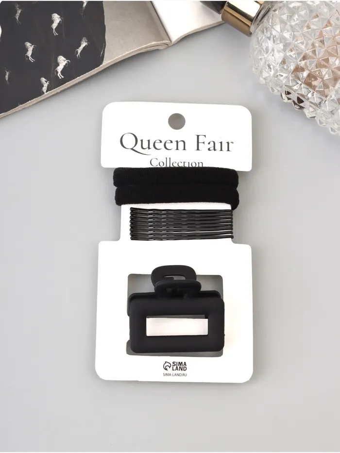 Набор для волос «Вивьен», 2 резинки 5.5 см, 8 невидимок 5.5 см, краб 4 см, классика, чёрный
