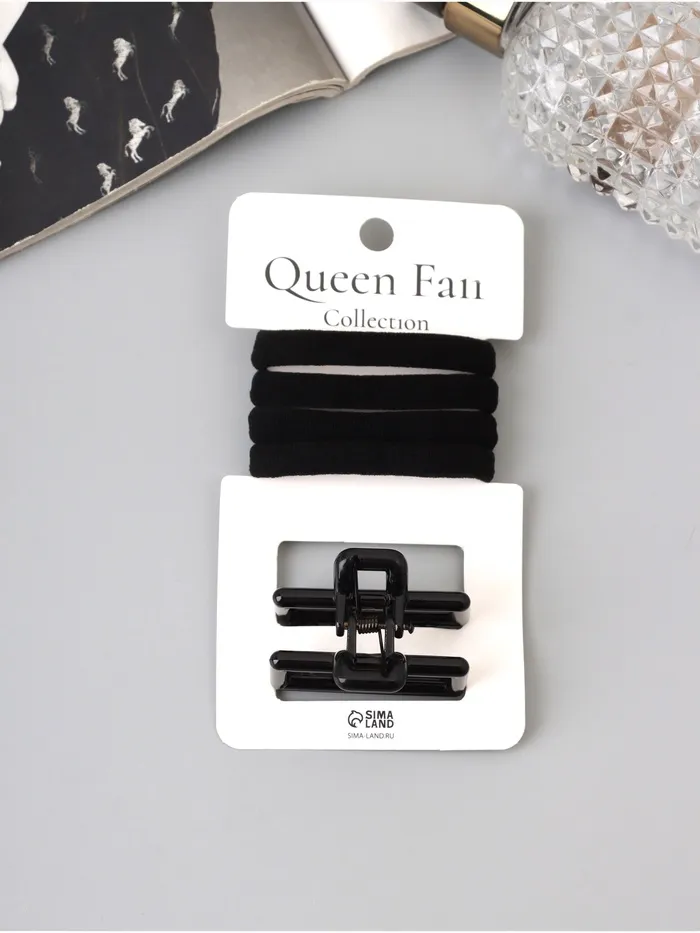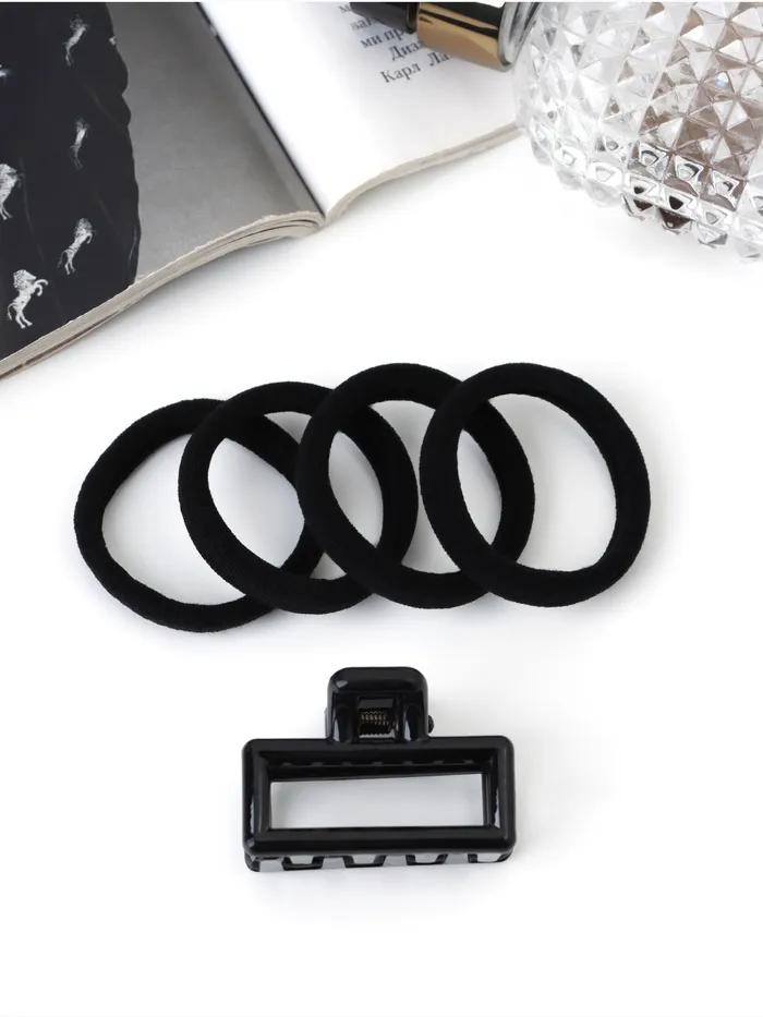 Набор для волос «Вивьен», 4 резинки 5.5 см, краб 4.5 см, классика, чёрный
