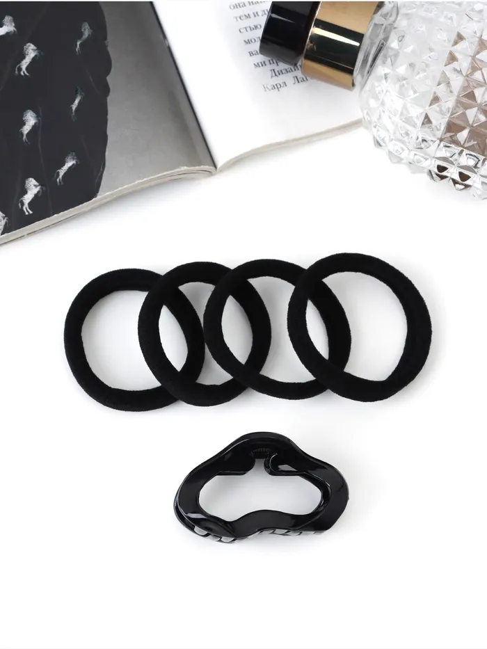 Набор для волос «Вивьен», 4 резинки 5.5 см, краб 4.5 см, волна, чёрный