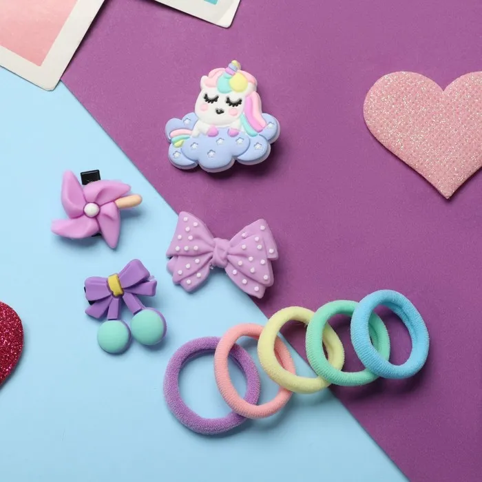 Благодаря ярким цветам, каждый день можно экспериментировать с новыми сочетаниями. Материалы – пластик, металл и текстиль – обеспечивают комфортное использование и долговечность. Дизайн с единорогами создаст волшебную атмосферу для сбора волос или создания праздничных причесок.