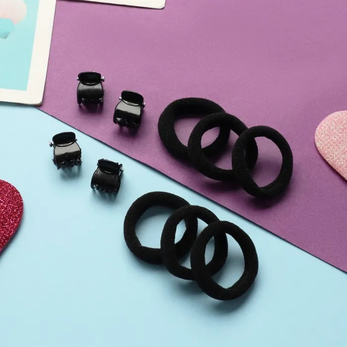 Этот набор позволит вашей маленькой «затейнице» придумывать новые модные образы каждый день. Изделия обладают долговечностью и надежностью, а их продуманная форма обеспечивает бережное отношение к волосам. Благодаря универсальному дизайну, черные резинки и крабики подчеркнут как повседневный, так и праздничный образ.
