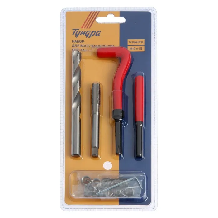 Набор для восстановления резьбы ТУНДРА, М10×1.5, 15 предметов — Характеристики
