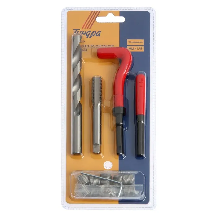 Набор для восстановления резьбы ТУНДРА, М12×1.75, 15 предметов — Характеристики