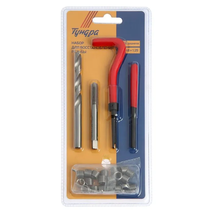 Набор для восстановления резьбы ТУНДРА, М8×1.25, 25 предметов — Характеристики