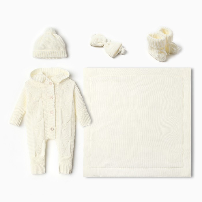 Набор для выписки Крошка Я (одеяло-конверт, бант, комбинезон, пинетки, шапочка), молочный — Характеристики