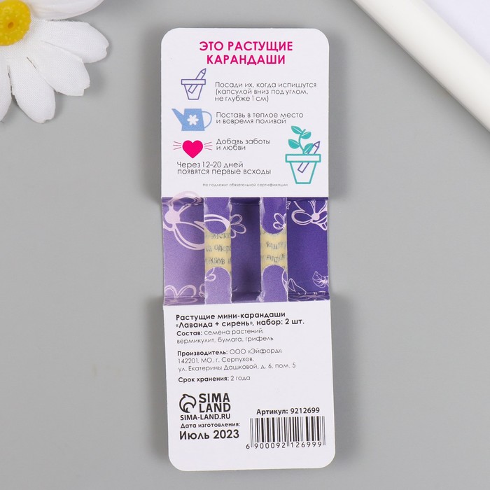 Набор для выращивания, карандаши подарочные «Лаванда и Сирень», mini, простые чернографитные, 2 шт. — Характеристики