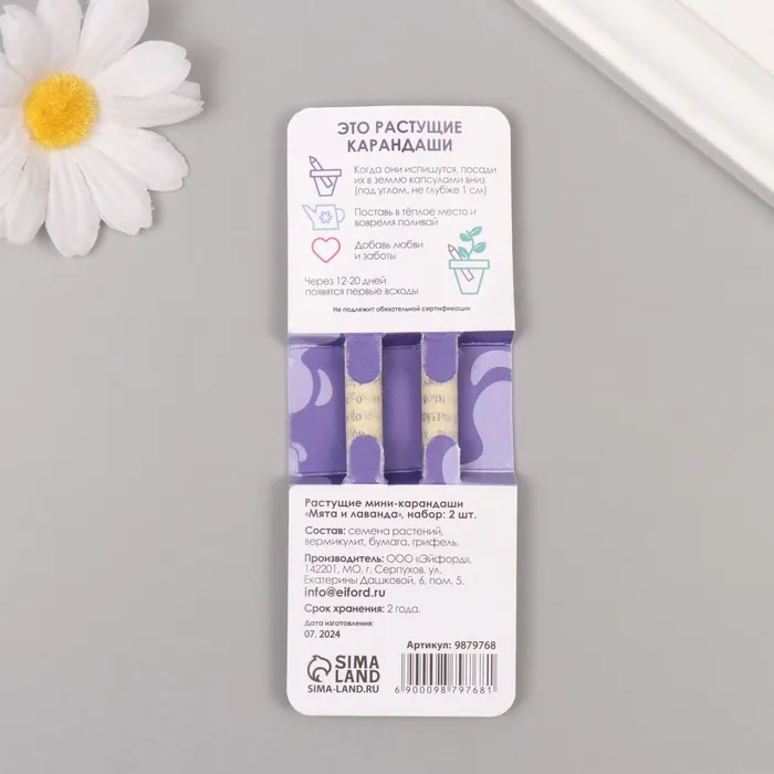 Набор для выращивания, карандаши подарочные «Мята и Лаванда», mini, простые чернографитные, 2 шт. — Характеристики