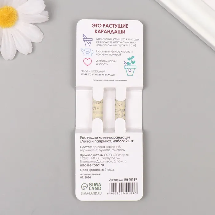 Набор для выращивания, карандаши подарочные «Мята + Паприка», mini, простые чернографитные, 2 шт. — Характеристики
