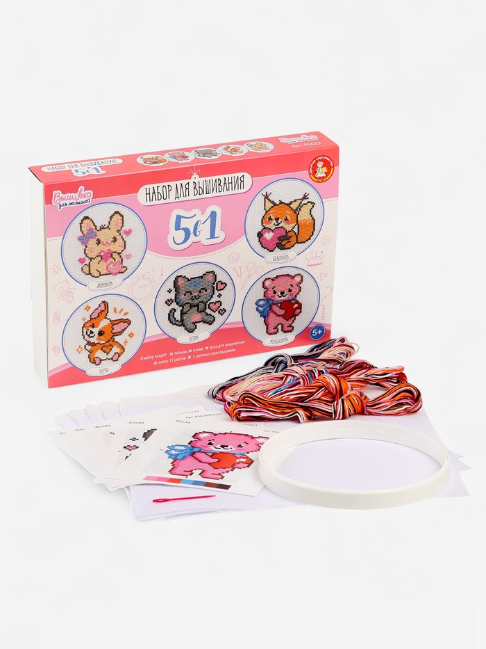 Вышивка крестиком на пяльцах «Милые животные 5 в 1», 15 см, набор для творчества