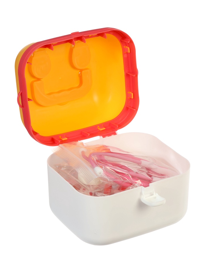 - Сундучок с удобной ручкой и наплечным ремнём превращается в настоящий врачебный кейс — его можно носить как сумку или ставить на стол в качестве мини-кабинета.