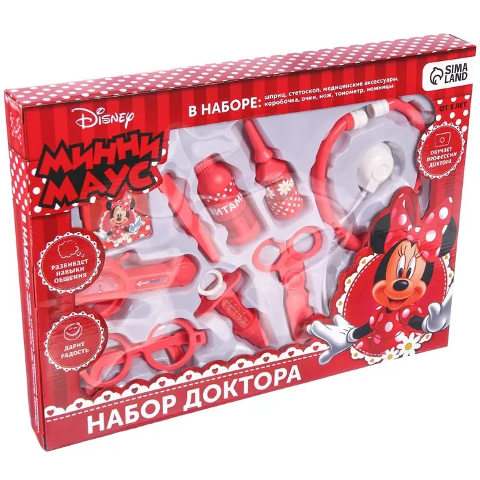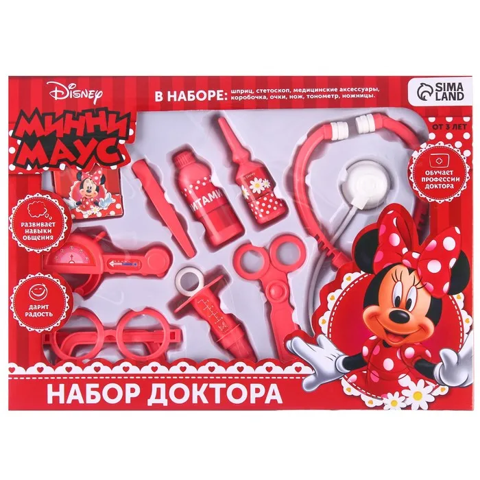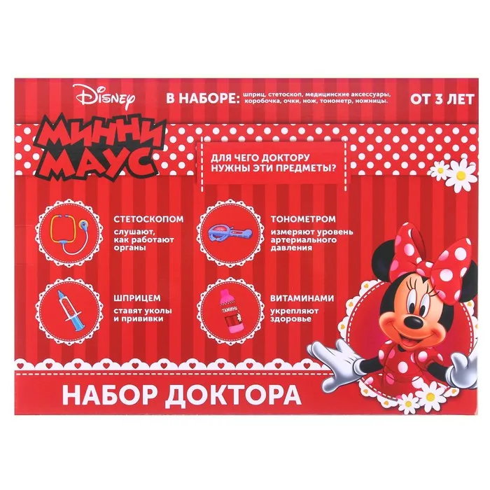 Погрузись в увлекательный мир профессий! Игровой набор доктора «Минни Маус» создан для девочек от 3 лет, которые мечтают примерить на себя роль врача. Это не просто игрушка — это первый шаг к пониманию заботы, ответственности и важности помогать другим.
