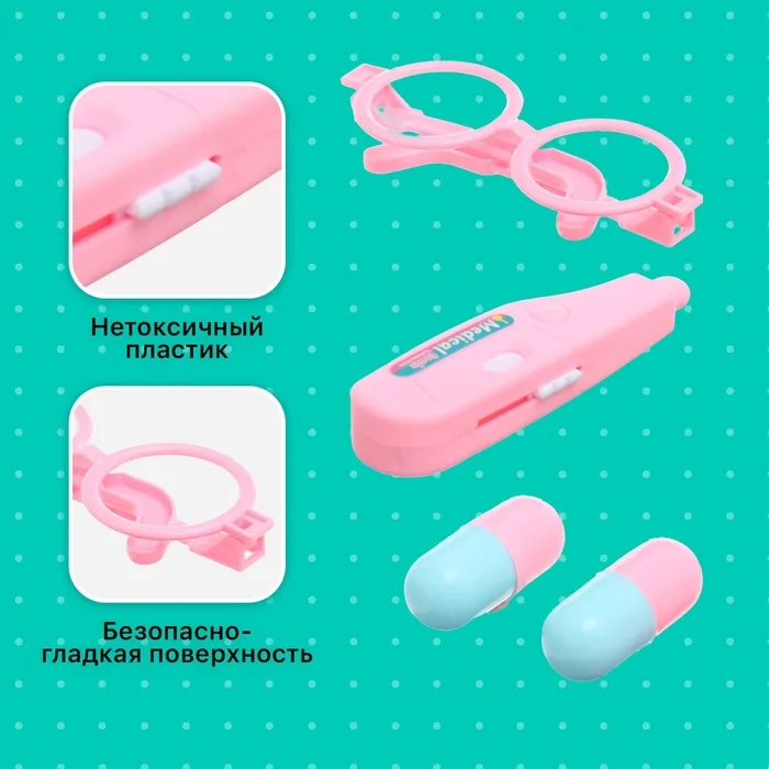 Подарите ребенку увлекательную игру и первые шаги в мир профессий с набором доктора «Юный врач». В набор входят все необходимые инструменты для маленького врача: очки, термометр и таблетки. Ребенок сможет осматривать своих пациентов, ставить диагнозы и назначать лечение. Игра с набором способствует развитию воображения, мелкой моторики и социальных навыков.