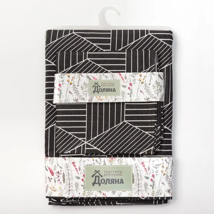 Набор Доляна скатерть 145х200см/салфетки 40х40см 4шт, Тренд черн, 100%пэ, рогожка 200 гр/м — Характеристики