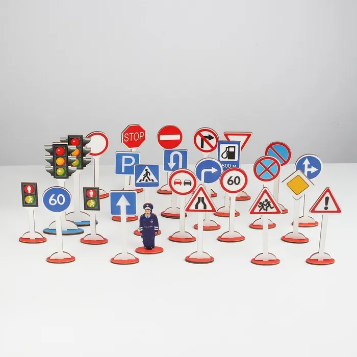 Набор «Дорожные знаки», 26 шт., в деревянной коробке — Характеристики