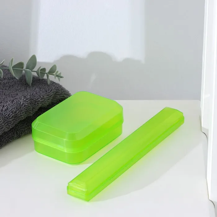 Набор дорожный, футляр для зубной щётки 19 см, мыльница 10×6×3.5 см, МИКС — Характеристики