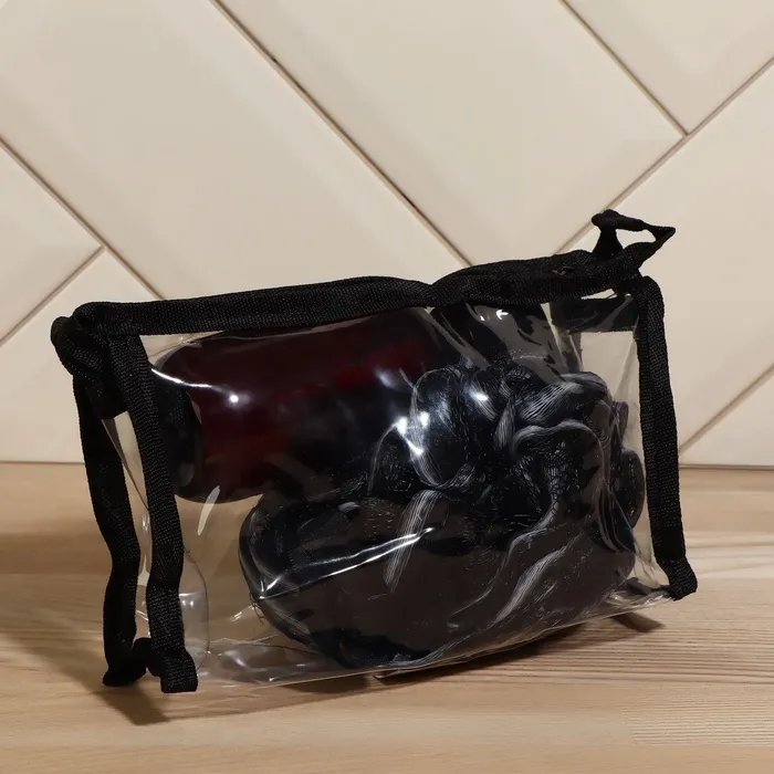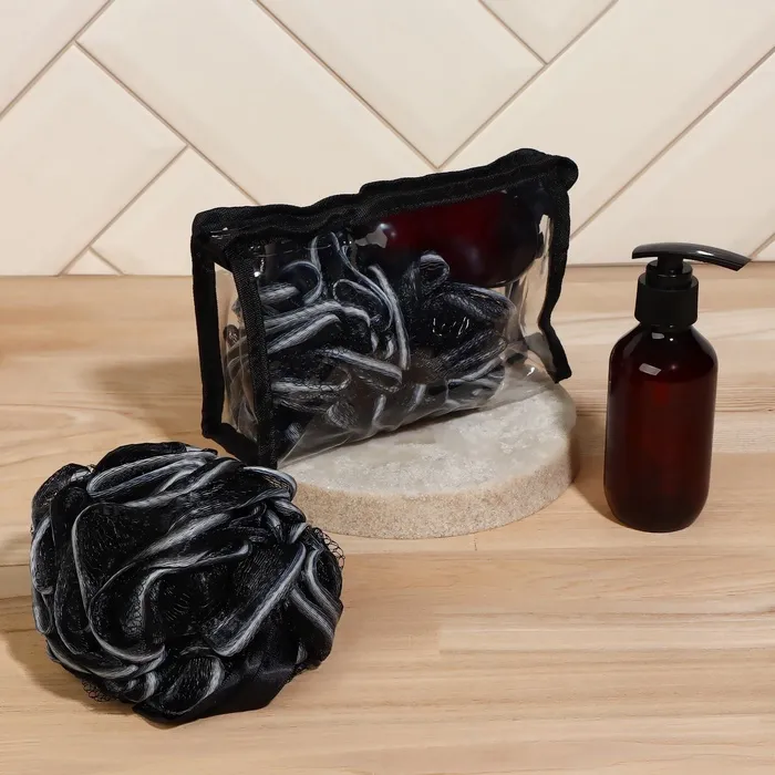 Данный набор содержит 2 полезных приспособления для поддержания ухоженного вида. Мочалка и небольшая бутылочка с дозатором пригодятся каждому. Удобная косметичка на молнии является отличным дополнением, с которым Вы легко сможете организовать нужные средства в вашей сумке или чемодане. В минималистичную бутылочку с дозатором можно перелить шампунь, бальзам или любимый крем. Набор не займет много места, но будет радовать Вас каждый раз при использовании.